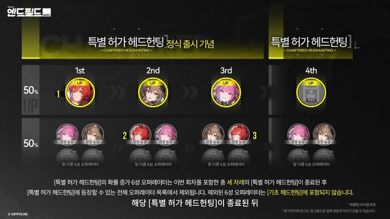 즉, 최고의 효율을 생각한다면 레바테인/질베르타/이본 3가지 중에 1가지가 나오면 바로 이륙하고, 어느정도 타협을 본다면 출석 보상인 아델리아를 제외하고 6성 캐릭터가 나오면 스타트 하는 것도 괜찮은 선택이라 본다.